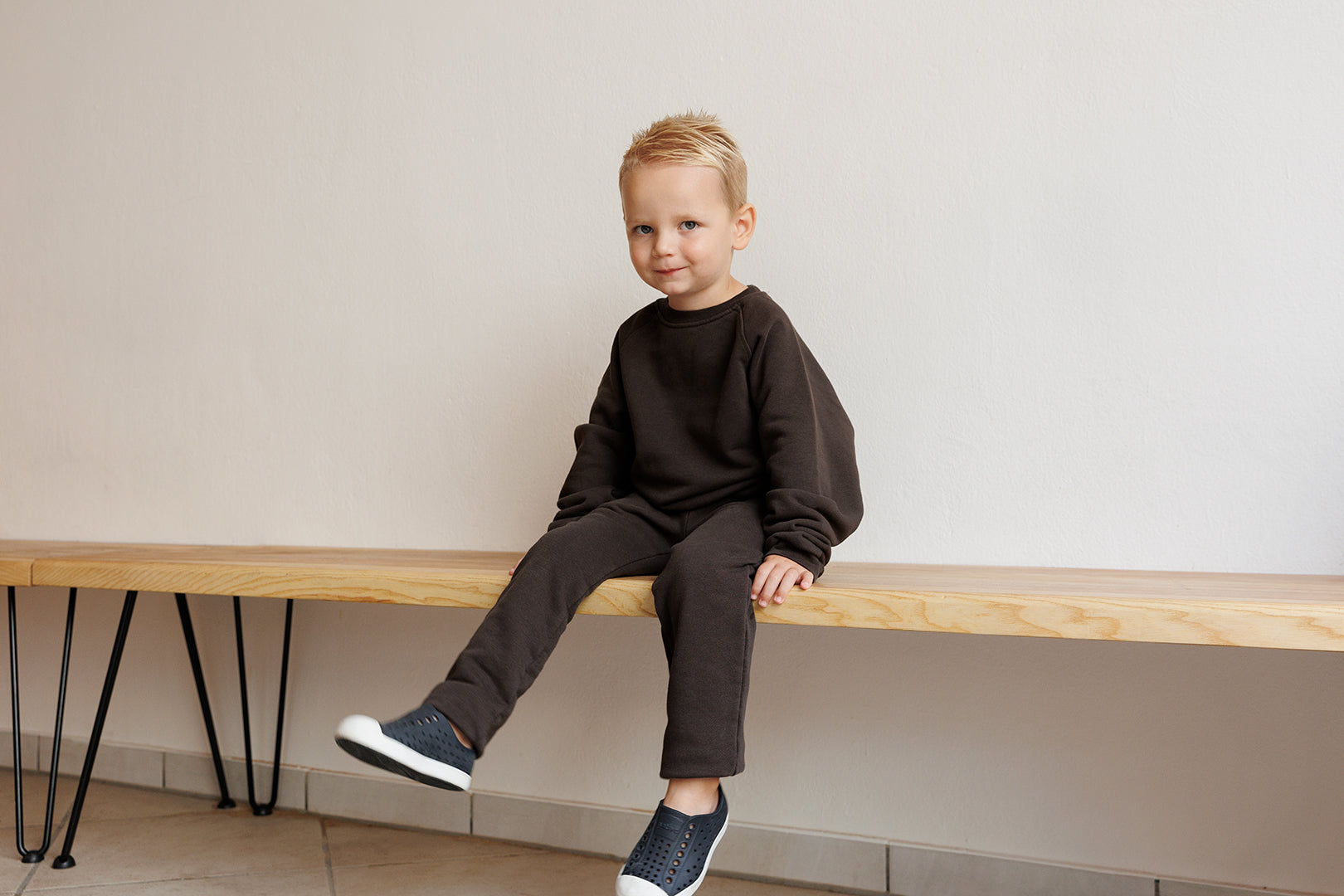 Nylan (3.5 years old / 3T) - wearing size 4T in espresso pants and crew